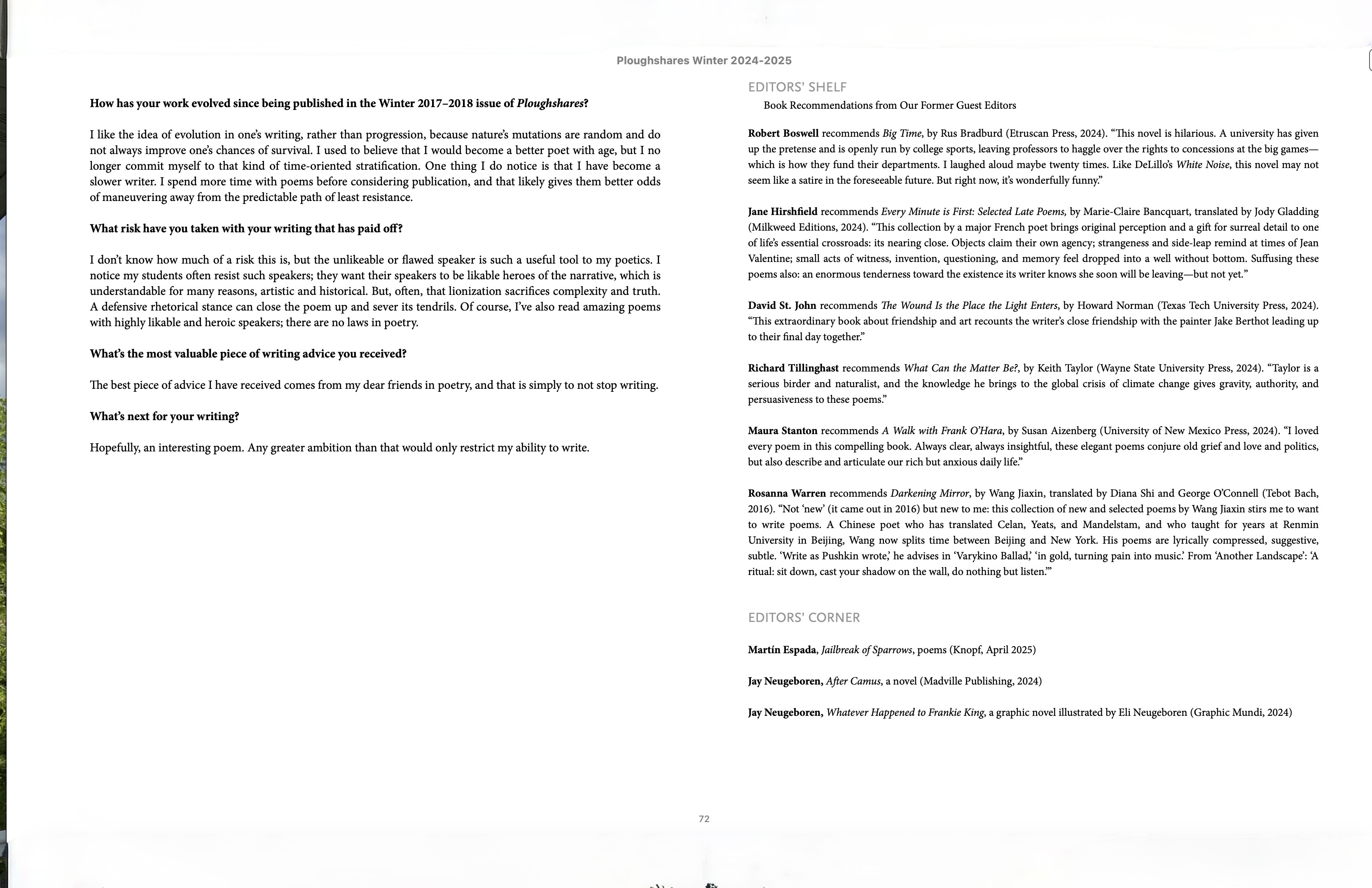 Chosen by Maura Stanton for The Editors’s Shelf in the Winter 2024/25 Issue of Ploughshares: